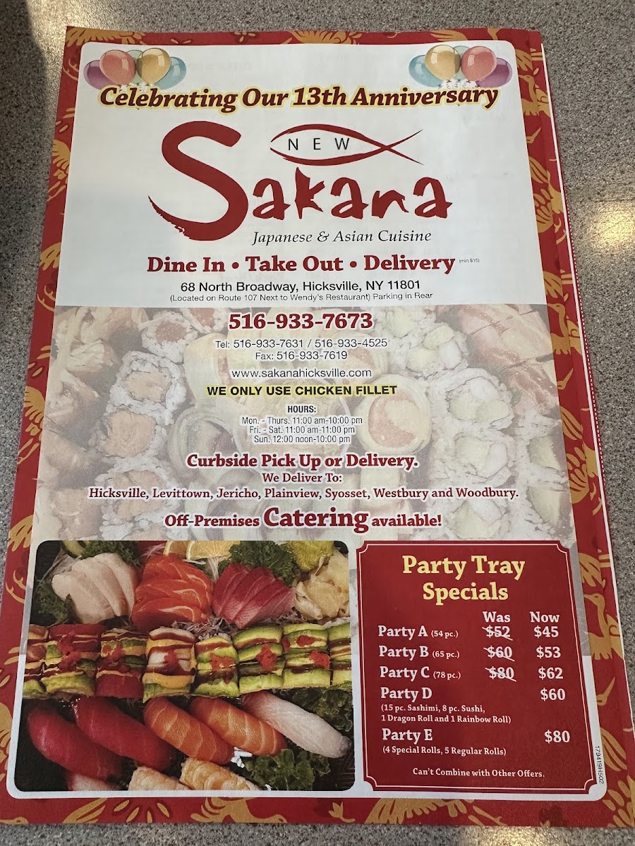 Welcome to Sakana, a delightful culinary treasure nestled in Hicksville, New York. Located at 68 N Broadway, this vibrant eatery artfully blends Chinese and Japanese cuisines to create a unique dining experience that leaves patrons craving more.